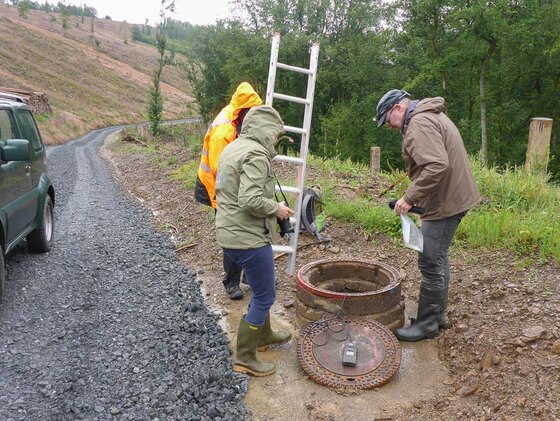 Dankenswerterweise hat Herr Nöh vom Wasserverband Siegen-Wittgenstein nach dieser Entdeckung umgehend die Biologische Station informiert. So konnten insgesamt 15 Feuersalamander und 1 Grasfrosch vor dem sicheren Hungertod gerettet werden.
