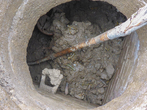 Lichtschächte, Gullys oder wie in diesem Fall, ein Schacht einer Wasserleitung, können schnell zur tödlichen Falle für Amphibien werden.