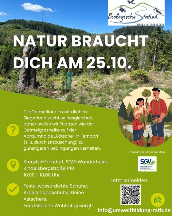 An 2 Standorten wollen wir am 25.10.2025 gemeinsam der einzigartigen Galmeiflora im nördlichen Siegerland zu besseren Bedingungen verhelfen.