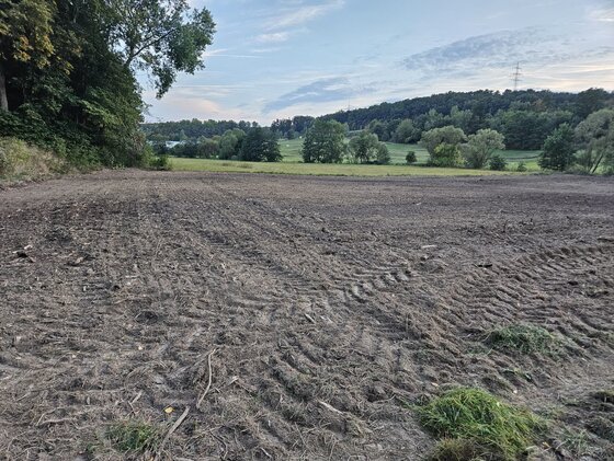 Auf einer ehemaligen Fichtenfläche in Anzhausen haben wir durch Mahdgutübertragung neues Grünland geschaffen – mit Material von einer wiesenknopfreichen Spenderfläche in der Nähe.